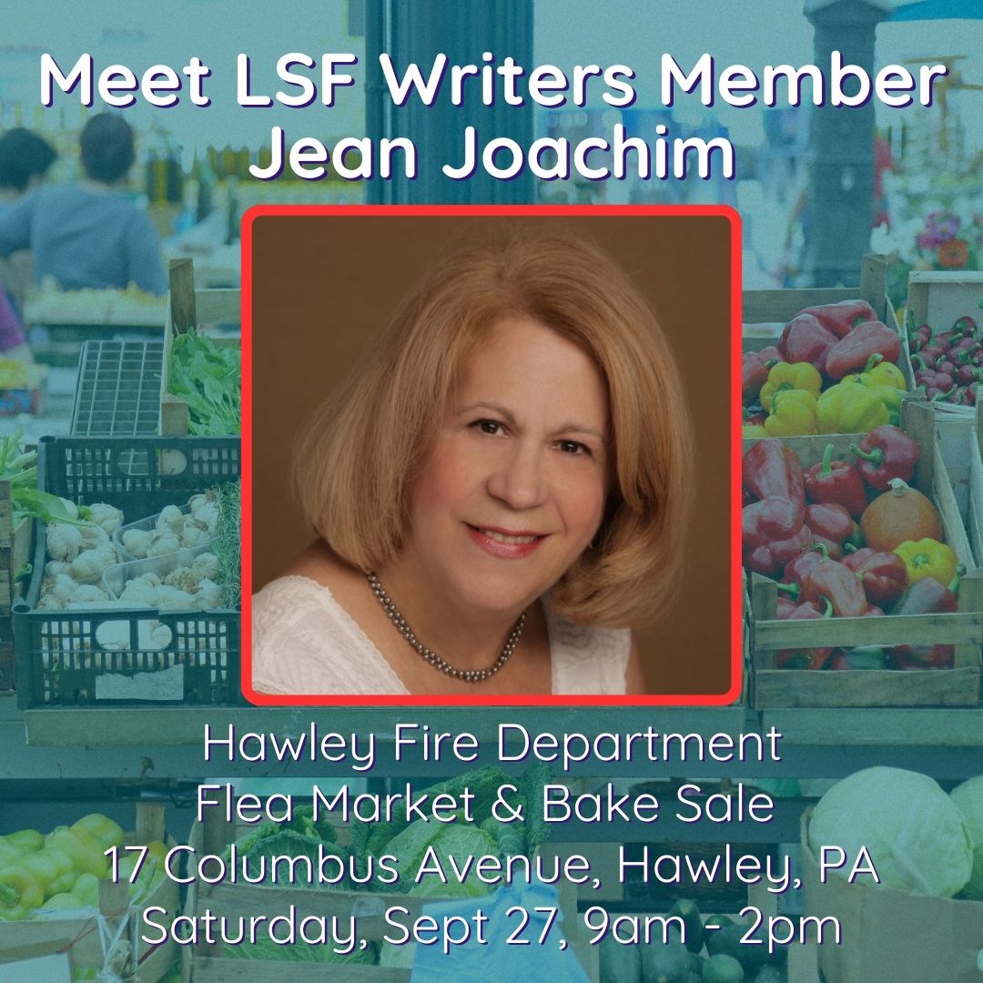 Meet LSF Writers Member Jean Joachim on Saturday, September 27th, at the Hawley Fire Department Flea Market & Bake Sale, 17 Columbus Avenue, Hawley, PA. Jean is the multi-published author of the First & Ten series (football romance), Contemporary & military romances, Romantic suspense & sweet romance. Learn more about Jean at www.jeanjoachimbooks.com.